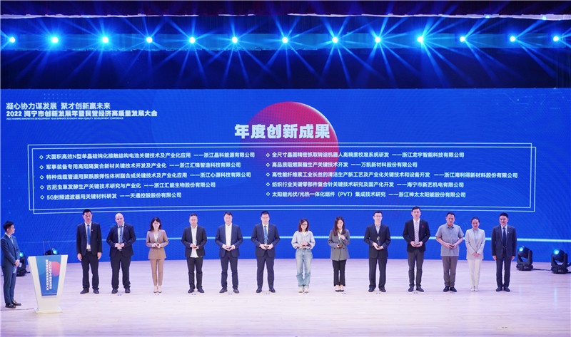 為牢牢把握長(zhǎng)三角一體化發(fā)展大機(jī)遇,深入實(shí)施創(chuàng)新驅(qū)動(dòng)戰(zhàn)略,加快建設(shè)杭州灣北翼科創(chuàng)樞紐,5月21日下午,“凝心協(xié)力謀發(fā)展 聚才創(chuàng)新贏未來(lái)”2022海寧市創(chuàng)新發(fā)展年暨民營(yíng)經(jīng)濟(jì)高質(zhì)量發(fā)展大會(huì)召開(kāi),進(jìn)一步提振企業(yè)信心,全力打贏“騰籠換鳥(niǎo)、鳳凰涅槃”攻堅(jiān)戰(zhàn),推動(dòng)海寧市工業(yè)經(jīng)濟(jì)高質(zhì)量發(fā)展。市委書記曹國(guó)良出席會(huì)議并講話。會(huì)上對(duì)一批年度創(chuàng)新集體和個(gè)人進(jìn)行了表彰,天通榮獲多項(xiàng)榮譽(yù)。